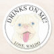 Personalized White Pug Dog Wedding Round Paper Coaster
