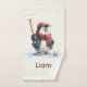 A charming winter-themed design featuring a playful penguin bundled up in a warm scarf and cap, holding a baseball bat and ready for a snowy game. This fun and cozy illustration perfectly blends the excitement of baseball with the magic of wintertime, making it a delightful choice for young athletes and sports-loving families. With the option to personalize with a name, it becomes a unique and meaningful keepsake. Ideal for a range of home and living products, this design adds warmth, personality, and a sporty touch to any space.