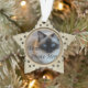 This custom dog or cat memorial ornament will make perfect memories for your beloved pet. The front of the design features black paw prints and a space for you to upload your favourite photo. Enter your pets name on the back along with your own special words. I have used the poem "The pets we love don't go away, they walk beside us everyday" but it can be changed to anything you like. Click on "Customize it" to change the photo size and font style and colour.