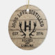 Personalized Wood Bourbon Barrel Wedding Monogram Ceramic Ornament