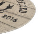 Celebrate the wedding day or anniversary of a special bride and groom with this customizable keepsake styled like a distillery logo stamped on the lid of an oak bourbon barrel! A monogram between deer antlers, couple's names and wedding year appear below arched text that reads “100% Love, Distilled,” on a background that looks like planks of wood. Makes a rustic looking, modern, personalized gift!