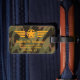 Show your pride wherever you go! This design features woodland camouflage uniform print. Customize it with your initials and important travel informations.