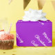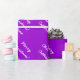 Personalized wrapping paper with Holiday wishes. Cute personalizable name idea for Christmas party. Customizable background colours and custom Xmas greetings text note. Purple example for girl. Surprise your mother, grandma, sister etc. too.