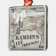 I was impressed by the quality and size of the ornament. Metal framing and design were perfect. Definitely recommend any of the metal framed ornaments. I ordered different ones all of the same quality and personalized professionally. Perfect No pictures as they were all gifts