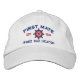 A personalized first mate embroidery nautical style. An original casual fashion embroidered baseball cap sure to make an impression on, or off the boat.