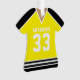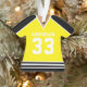 Celebrate your hockey star with this personalized yellow and black hockey jersey ornament. Perfect for commemorating a special season, player, or team. Customize it with a name and number to create a unique keepsake.