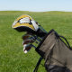 Create a personalized golf head cover using your photos. A fun way to express yourself while out on the greens. Add three photos. Modern yellow and black design. Also, makes a great gift. Use the template to create your own personalized golf head cover.