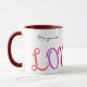 Yellow Labrador Valentine's Day Mug. Unique and funny Labrador Retriever Cartoon created by Naomi Ochiai from Japan. An adorable Yellow Labrador writing sand letters with a bough. Great Labrador gifts for dog lovers who own Yellow Labs! You can customize text and more!
