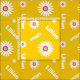 Bold daisy named repeat patterned fabric in bright yellow and white with hints of pink and lime green. Ideal for sewing projects for girls. Customize with your own choice of name currently reads Lillian. The background colour can also be changed if required. Design is produced to tie in with other products from this range. Original art and design by Sarah Trett.