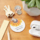 This modern botanical Yoga Instructor Keychain is decorated with a yellow watercolor sunflower.