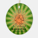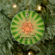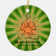 Yoga Ornament Christmas 20XX. Yoga Pose against a green and orange starburst background. All text customizable, front and back!