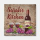 Wine and grapes vineyard rustic custom name personalized refrigerator magnet is perfect for that Tuscan style kitchen. It has a rustic brick and stone look background with images of grapes, wine glases, and a wine bottle. The name can be changed to the name you need. "Kitchen' can also be changed to suit your need, (ex. - cucina, bistro, galley, etc). The bottle can also be customized however you like, with the matching name as shown, or with something like, "Smith Vineyards", or "Your name Cabernet", etc...