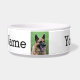 This feeding bowl has been designed so you can personalize it with two photos of your pet, add your pet's name, and add words of your own.