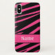 This trendy iPhone X case features a modern black and fuchsia pink zebra print design.