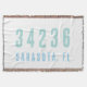 Upscale, simple and modern design Zip Code Throw Blanket personalized with your own Zip Code, City and State. In beautiful, coastal blue colours sure to match any Coastal Decor or Beach House Decor. Easily personalize this design with your own location.