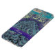 Personalized Frothy Ocean Waves Fractal Pattern iPhone 6 Plus Case. An abstract pattern in blues, green, yellow and purple with a purple ribbon. Fill in your name at the prompt to personalize and customize anyway you like. A unique and fashionable protective case for your new favourite phone.