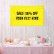 50% de réduction personnalisée des affiches de vente. Concevez votre propre drapeau de bannière vinyle à 50% de réduction ou signe pour l'impression. Faites vos propres bannières pvc à l'intérieur ou à l'extérieur. Ajoutez votre propre texte imprimé et la couleur arrière - plan. Signer modèle avec typographie moderne personnalisable. Idéal pour les affaires, l'ouverture de boutique / magasin, offres spéciales de vacances, publicité, vente de cour ou de garage, lieu, fête, événements sportifs, billetterie, vendredi noir, occasions promotionnelles, etc. Signalisation personnalisée avec grandes lettres / grand lettrage. Disponible en différentes tailles et formes pour mur, balcon, clôture de jardin, immeuble de bureaux, toit etc. Avec ou sans trous pour l'accrocher. Modifiez la quantité pour le prix le moins cher. Impression numérique, livraison rapide. Couleurs jaunes et noires ou personnalisées.