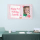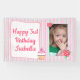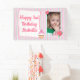 Ajoutez l'image et l'âge de votre fille à cette jolie bannière d'anniversaire rose.Bandes bleues roses et turquoises avec des fleurs et un cupcake blanc mignon.