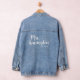 Personnalisée Madame Nom Mariage Veste Denim de mariage avec votre nouveau nom dans la typographie de script moderne. Beaucoup d'espace autour pour ajouter vos propres touches artisanales.