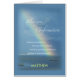 Félicitez quelqu'un avec cette carte bleue de confirmation, qui a une colombe en silhouette passant par l'arc-en-ciel, sur un texte d'écriture. Il propose un texte personnalisable en personnalisant avec le nom du jeune homme ou de la jeune femme à confirmer.