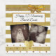 Personnalisez ce Étiquette de bouteilles de vin de l'Anniversaire d'or, coeur d'or et arrière - plan d'arc. Il suffit de télécharger vos photos préférées de maman et papa comme leur photo de mariage et une photo d'eux maintenant.