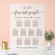 Sac à mariage en acrylique dépoli pour un maximum de 10 tables avec "nos favoris" en typographie simple et un script élégant avec des swashes, vos noms et la date de mariage réunis par un coeur et "Nous sommes si heureux que vous soyez ici" dans la typographie serif moderne.