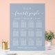 Sac à mariage en acrylique bleu poussiéreux pour 12 tables avec "Our Favorite People" en simple typographie blanche et un élégant script blanc avec des swashes, "We are so content you're here", et vos noms et mariages datent réunis par un coeur.