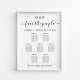 Poster chic mariage pour 7 tables avec "nos favoris" dans un mélange de lettres simples et d'un élégant script avec des swashes, vos noms et la date de mariage unis par un coeur et "Nous sommes si heureux que vous soyez ici" dans la typographie serif classique. Sélectionnez l'option de téléchargement numérique à modifier avec des modifications dernières minutes et imprimer localement.