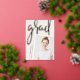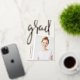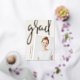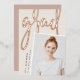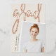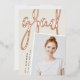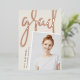 Un faire-part moderne de graduation de photo comporte une photo verticale ou à orientation portrait avec un léger inclinaison pour un regard neuf. "Grad" apparaît dans la brosse lettrée rose feuille d'or typographie script. Personnalisez avec le nom du diplômé, l'école et l'année de fin d'études. Ajoutez un message personnel à l'arrière, ainsi qu'une photo supplémentaire.