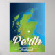 Perth Scottish vacation Travel poster. Map of Scotland.