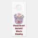 Personalized beautiful animal with flowers, white purple door hanger for purple lovers. Adorable funny cute nursery door hanger for girls. On the frontside is white background with a cute baby animal and text in purple and on the backside is a suitable purple cute floral pattern.