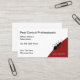 Modern pest control and Exterminating business card template with image of an ant insect in the background in a simple business card layout for an exterminator that provides commercial and residential services.