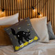 Pet Black Cat On Grey White Yellow Cute Modern Throw Pillow