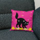 Pet Black Cat On Pink White Yellow Cute Modern Throw Pillow