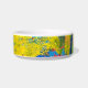 This is a heavy, durable bowl decorated with Tibbies of many colors, the perfect size for hungry/thirsty Tibs. The design is interesting and printing clear.