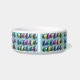 This is a heavy, durable bowl decorated with Tibbies of many colors, the perfect size for hungry/thirsty Tibs. The design is interesting and printing clear.