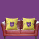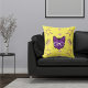 Pet Cat Purple White On Black Modern Cute Yellow Throw Pillow