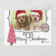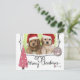 season greeting christmas pet photo cards. This Christmas photo card design is customizable with your own family name and photo! Or of course your dog. There's a christmas background, and the photo is separated from the design by a border. A fun doodle of christmas ornaments with reds and greys followed by "peace and Love" with a handwritten font feel. The rest of the text is customizable! Personalize with your own Christmas greeting or wishes, and your own family names. You can even add the date.
