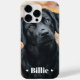Phone case featuring your custom pet photo with with the pet's name as a white text overlay flanked by two hearts.