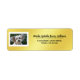 Elegant, modern DIY personalized return address label for one person (can be customized for a family as well), with a stand-in (with a mask with rounded corners) for a photo of your pet cat (or one of you and your furball friend; or you can upload a photo of a dog instead), and with elegant calligraphy / handwriting script with flourishes for your first and last name or your family's name plus all-caps writing for your address. On a stylish golden gradient background with a white frame for the pet's photo.
