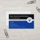 Pet kennel business cards with modern design that includes a blue background colour you can customize, text layout you can personalize for your pet service business and image of a dog and cat with shelter roof silhouette. Designed for a doggie day care centre, kennel, boarding services, or caretaker.