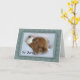 A Cavalier King Charles Spaniel puppy rests his head on a pale blue pillow. The sad look in his eye says, I'm sorry for your loss. Customize text to add your personal condolences.