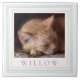 Keep your cherished pet friend close with this PET LOVE ceramic tile. Easily customize it by choosing "Personalize this template". Upload your pet's photo, and change "WILLOW" to your pet's name. Change the font, font size and/or colour with Edit Design, and Edit Text. * The design around the photo is a framework of thin lines, in rainbow colours. * Matching products are available in the PET LOVE category of my shop. ** If you'd like to transfer this design to another product type, shape, or size, please check my shop first to see if I have one already done, because I'll have fiddled with it to make the design fit just right and it will save you the bother. Sometimes designs transfer ok, sometimes they don't. Just fyi. If you need help or have a question please message me.