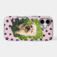 Celebrate your furry friend wherever you go with this customizable iPhone case! Featuring a sleek black paw print pattern with photo design over a soft pink background, it’s the perfect blend of style and durability. Easily personalize it with your own pet photo using the built-in brush stroke photo template. You can also change the background color to your favorite and add your name or initials. A thoughtful gift for animal lovers and pet parents alike.
