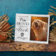 Pet dog memorial plaque featuring a framed treasured photo of your beloved dog, a modern white marble background, a paw print with a heart, a sympathy remembrance quote that reads "you left your paw prints forever on my heart", plus their name, and dates.