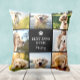 Pet Memorial Photo Collage Throw Pillow. A dog really is a man's (or woman's) best friend! A personalized dog memorial Throw Pillow featuring a trendy black background, a collage of your dog, character words that represent your animal, the saying "best dog ever", and their name.