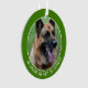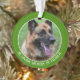 This ornament is a loving memoriam to your dog or cat. It has a green border around your pet's photo and can be personalized with the pet's name. You can alter the wording if you wish. It can be hung in your home or office, or on a Christmas tree. In loving memory, to remind you of a loved dog.