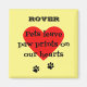 A magnet with a lovely thought to remember your pet by: "Pets leave paw prints on our hearts". Enter the name of your pet to create a special personalized design. Black text on a large red heart, with black paw prints and a primrose yellow-colored background. For cats or dogs or rabbits - or any pet imaginable.