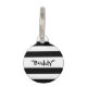 Customize this modern black and white stripes pet ID tag with your pet's name and QR Code information text on the back. Replace the QR Code sample with your own.