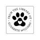 From the library of or this book belongs to rubber stamp featuring a pet paw print with a heart. Custom text and name in a whimsical serif font.